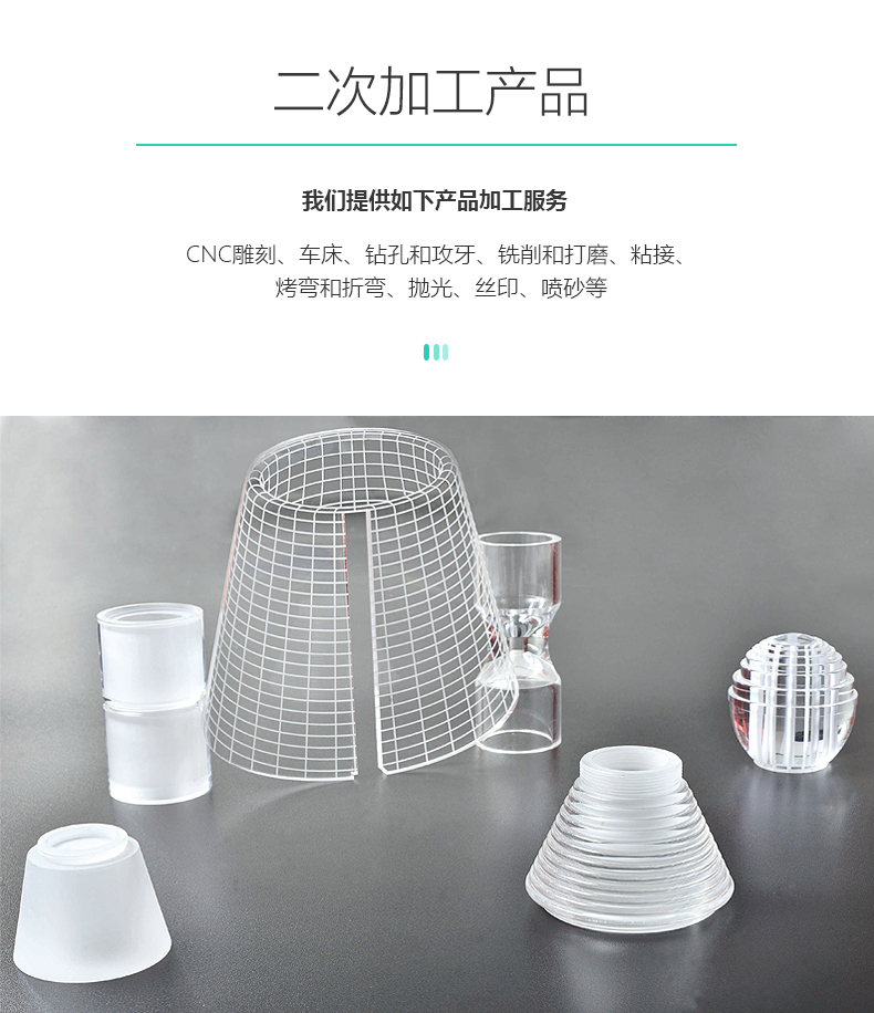 CNC雕刻、車床、鉆孔和攻牙、銑削和打磨、粘接、烤彎和折彎、拋光、絲印、噴砂等